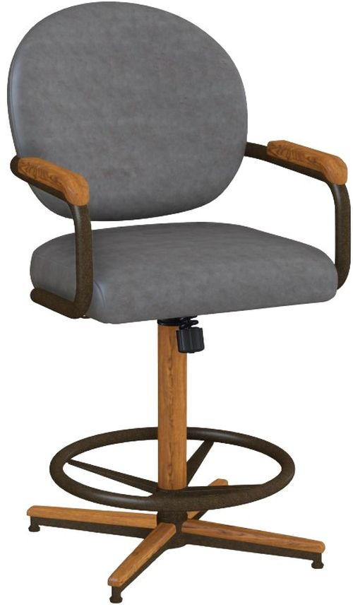 This counter chair from our Chambers collection is made with a metal and wood base and narrow wood caps with a swivel-tilt mechanism. Fully upholstered with levelers make this seat perfect for any counter dining area.Read More
