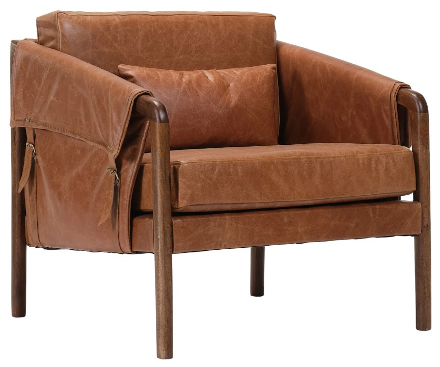 The chair from the Alexi collection boasts a timeless design that merges sophistication with comfort. The brown leather upholstery offers a luxurious feel and a rich, warm tone that complements various interior styles. Its smooth, supple texture adds an element of elegance and ensures a comfortable seating experience.Read More