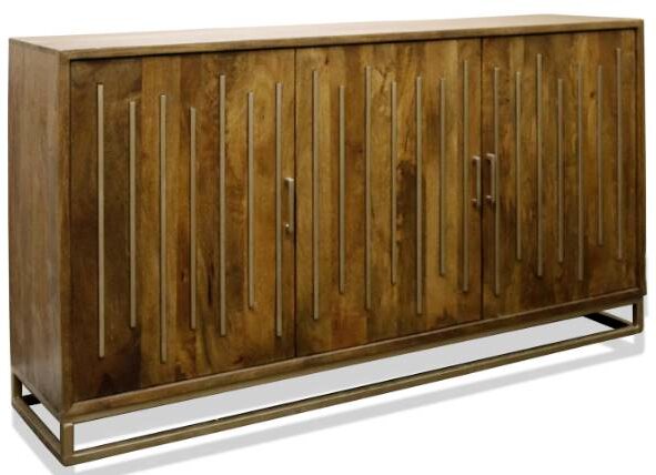 Include this sideboard in your dining room design, which features a walnut finish mango wood frame and 3 doors with brushed brass metal details. This sideboard will surely make a statement in your dining room design.Read More