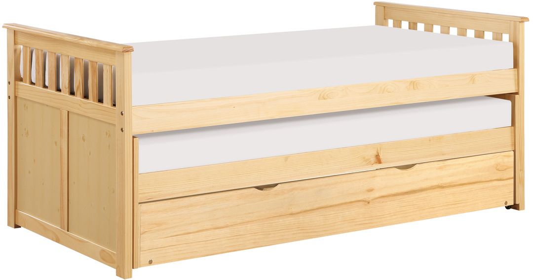 This transitional twin over twin bed is featured in a natural pine finish making it an appropriate choice for a number of youth bedroom settings. The bed’s configuration allows for the addition of a twin size trundle.Read More