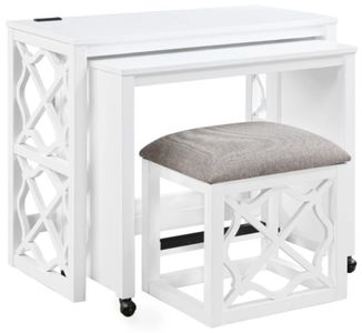 Create a bright and efficient workspace with this versatile 3-piece nesting desk set in a crisp white finish. Crafted from birch veneer, solid wood, and engineered wood, this set includes a large desk equipped with two convenient USB charging ports, a smaller rolling desk with smooth casters for effortless mobility, and a matching padded stool.Read More