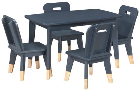Available in sophisticated navy blue, classic white, or modern gray, the set features a stylish two-tone finish on the chairs that beautifully accents any playroom or bedroom while providing a stable surface for crafts and snacks.