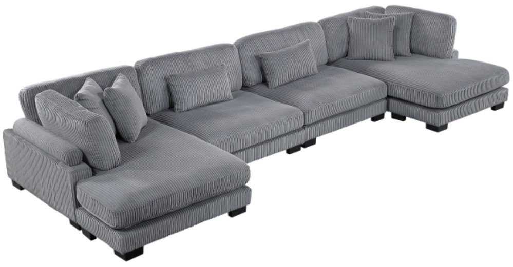 Configurable to your available space, the Traverse Collection allows for the addition and detachment of pieces for a customized seating experience. The 4-piece sectional configuration consists of two armless chairs with two chaises. The gray corduroy fabric upholstery creates a plush expanse for a soft touch experience.Read More