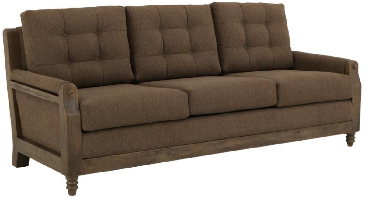Transform your living space with this stunning wooden-framed sofa, which perfectly combines craftsmanship and comfort. The Xel-Ha II Collection features tufted back cushions upholstered in durable, textured brown fabric, providing plush support and an elegant touch.Read More