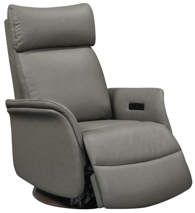 The Leather Italia™ Royce Tracy power glider recliner delivers both comfort and convenience with its power reclining and gliding features. Upholstered in soft gray leather, it offers a sleek, modern look while providing a smooth, effortless recline for ultimate relaxation. Ideal for any living space.Read More