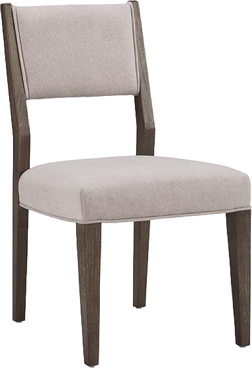 Offering a fresh take on transitional dining, the Kavanaugh collection is sure to turn heads. Its easy-going look is crafted from a Weathered Kona Brown finish and sophisticated neutral fabric upholstery that will complement any interior space.