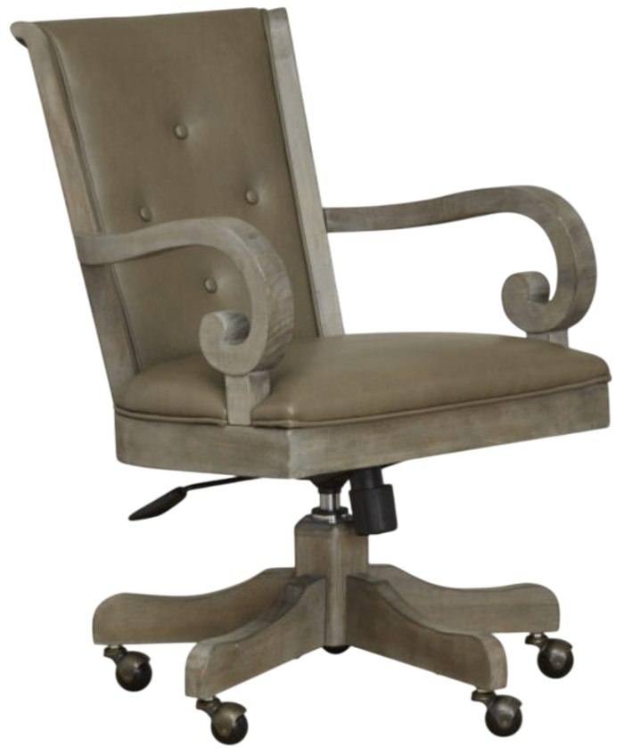 Magnussen Home® Tinley Park dove tail gray swivel chair combines vintage-inspired charm with everyday comfort. Upholstered in a soft, neutral fabric, it features a smooth swivel base for flexible movement. Designed to complement the Tinley Park office collection, this chair adds elegance and function to your workspace or reading nook.Read More