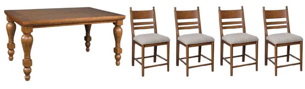 Relaxed living and cozy comfort—that’s what traditional farmhouse design is all about. And what better way to embrace your love of rustic country style than with this counter height dining table. Celebrating the beauty of simplicity, its thick wood-tone top and chunky turned legs marry functionality with classic appeal for a fresh feel.