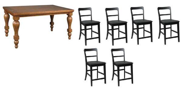 Relaxed living and cozy comfort—that’s what traditional farmhouse design is all about. And what better way to embrace your love of rustic country style than with this counter height dining table. Celebrating the beauty of simplicity, its thick wood-tone top and chunky turned legs marry functionality with classic appeal for a fresh feel.