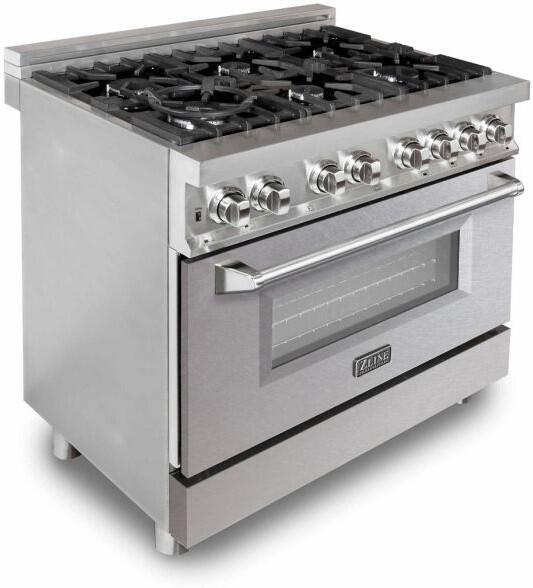 ZLINE's Professional 36" Range is complete with a 6 burner gas cooktop for energy efficiency, temperature control, and even-cooking. The 4.6 cu. ft. of deep oven capacity provides a large cooking area that’s perfect for multiple dishes at once and easily handles large baking sheets, like an 18" pizza.Read More